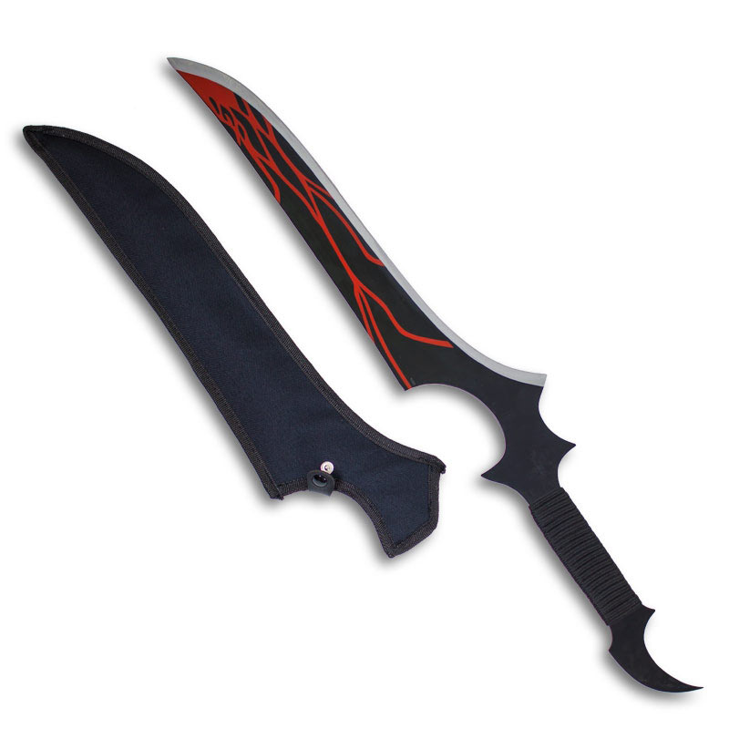 Come be amazed by the Blood Talon Sentinel Sword. This full tang sword has an 18 inch blade made out of stainless steel. In fact, the whole dragon sword is made out of stainless steel. The handle is wrapped with black cord and ends with a hooked pommel to deal extra damage at close range. The sentinel sword is black with red markings on the blade that look like the sword has been soaked in blood and that this blood is now dripping off.