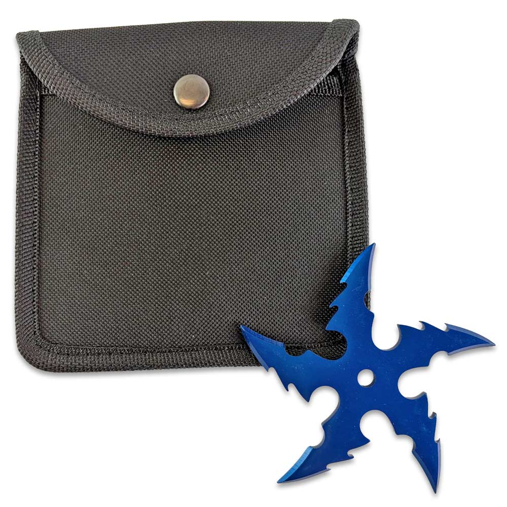 This blue throwing star also comes with a nylon sheath, which makes a big difference if you plan on carrying it or tossing it in a gear bag. The sheath keeps the points covered so you're not digging around and risking a cut, and the belt loop makes it easy to bring along to your usual throwing spot. It's simple, but it does exactly what it needs to do.