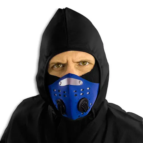 Once you put on the blue 20.5" menpo mask, your face will be covered and your identity will be protected. You will even have an air filter to ensure that you breathe clean air (after all, ninjas are close to nature and love pure air).