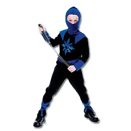 The jumpsuit has a blue overpiece on the shoulders and a cool blue ninja star with a Yin-Yang in the center. This ninja suit is a bargain at our price! Throw in one of our blue plastic samurai swords or a ninja weapons pack and your kid'll be set for secretive ninja work.