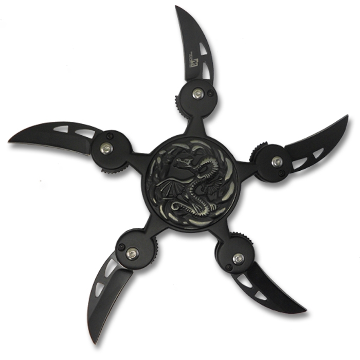 Looking for that one-of-a-kind knife to all to your weapons collection? Look no further then the dragon storm folding knife. This five blade folding knife is unique, powerful, and eye catching.