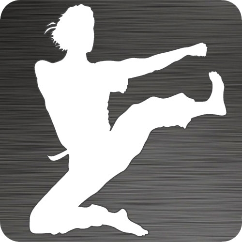 The flying kick vinyl decal is one of our favorites, we just don't know how this woman has managed to stay in a perfect flying kick position, mid-air, with her hair blowing in the wind for all this time, it's baffling.