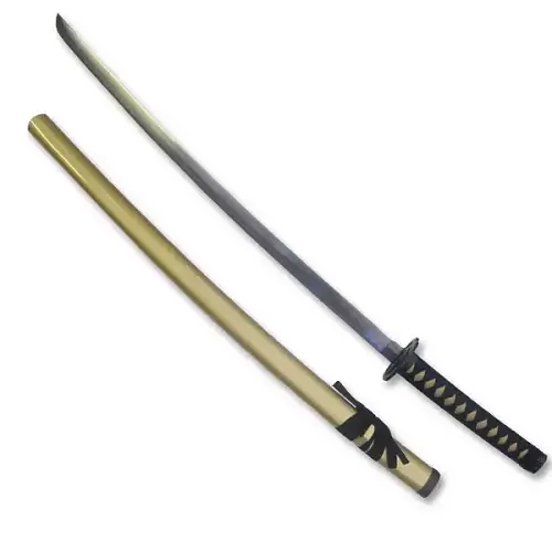 The blade of this fine katana is crafted from a sturdy 440 Stainless Steel while the scabbard is finished in a high-gloss metallic gold paint.