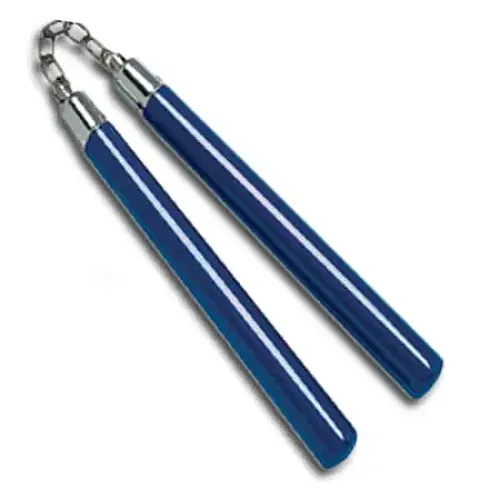 Graphite is an ideal material to create nunchaku with, it is stronger and lighter than traditional materials. These 'chucks wont chip or suffer from exposure to moisture and they have a near perfect finish free of the natural variations found in wood or rattan. Chain and ball bearing design is ultra strong and creates a menacing chain sound during use. Measures 12 inches in length. Glossy finish available in red or blue.