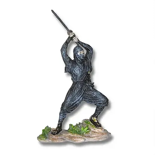 Our High Handed Katana Ninja Statue measures 7" in overall height, with the ninja himself standing just a hair over 5" tall. You will love the fine attention to detail in this ancient Japanese warrior. His sword is held high, ready to chop his next opponent into two opposing pieces! He's standing on a very realistic looking piece of lightly vegetated, volcanic rock. This figurine would look great (along with some of his friends) on your desk at work, or an a shelf or table at home! Whether or not it looks totally cool or totally dorky is entirely up to you.