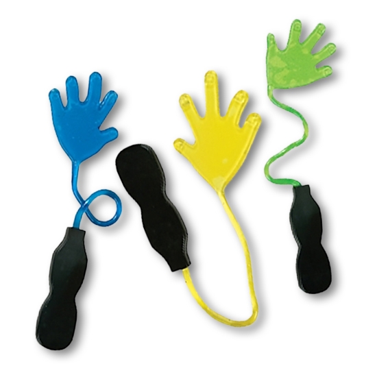 These karate chopping sticky hands are a fun toy for kids of all ages. These are similar to other sticky hands but the attached handle makes them easier to control for delivering the perfect karate chop! Made from a super stretchy material in three awesome colors.