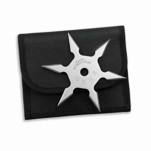 The chrome color six pointed shuriken measures four inches in diameter. That is the perfect middle ground between shuriken that are too small to be deadly and too large to throw accurately. The medium size makes the chrome ninja star a perfect fit inside the black case that you can secure on your belt loop. It is very easy to pull this throwing star out of its case while you aren't even looking. Why aren't you looking? Because it looks cooler if you just pull it out while you've got your eyes on your target.