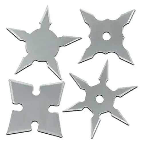 These mini shinobi throwing stars are sure to hit the mark. Shaped and balanced with sharp double edges, they'll pierce nearly anything they are thrown at. Made of stainless steel and measuring 2.5 inches in diameter, these stars provide stealth and accuracy that any shinobi warrior would appreciate. Does not include a case.