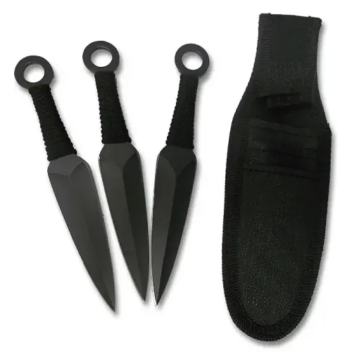 The ninja kunai pocket set is small enough to easily fit in a ninjas pocket and comes with a nylon sheath for safe and easy carrying. Each of our mini kunai throwing knives are crafted out of 6 inches of stainless steel. There are three knives which are balanced to perfection in this mini ninja kunai set. Pick one up today and watch the knives sail through the air with ease!