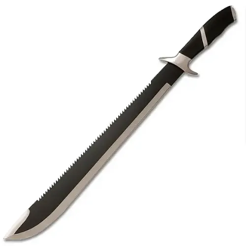 For the price, this is one of the best machetes our ninjas have ever seen! Constructed for heavy duty chopping and slashing, this thing will hold its own with its AUS-6 steel. The blade is also equipped with a sawtooth spine to take care of whatever else stands in your way (foliage, enemy clan ninjas, etc.).