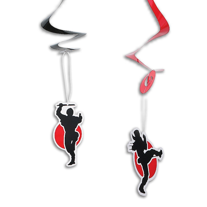 Ninja Warrior Party Hangers. Each set comes with 12 spiral hangers and 4 unique designs. You can hang them from the ceiling, chandeliers, Christmas trees, Festivus poles, and door fixtures.