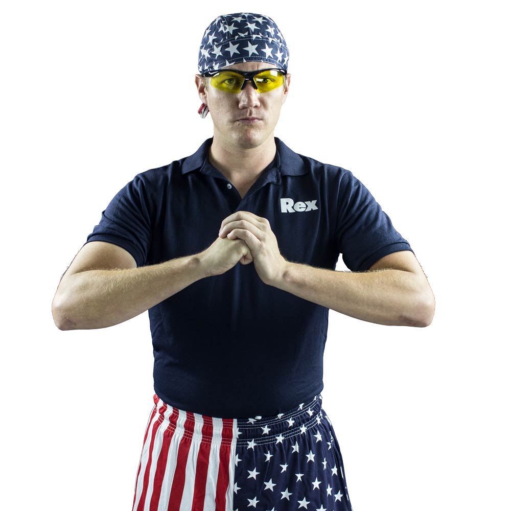The patriotic theme also makes this costume versatile. While it is a send-up of martial arts instructors, it also works as a goofy USA-themed outfit for July 4th parties, sporting events, or parades. The American flag bandana is a bold piece on its own, and paired with the navy polo and baggy pants, you'll look like the kind of instructor who would proudly declare himself a "champion of freedom and justice." Add the yellow safety glasses, and you're ready to deliver a karate lesson with style, or at least with confidence and comedy.