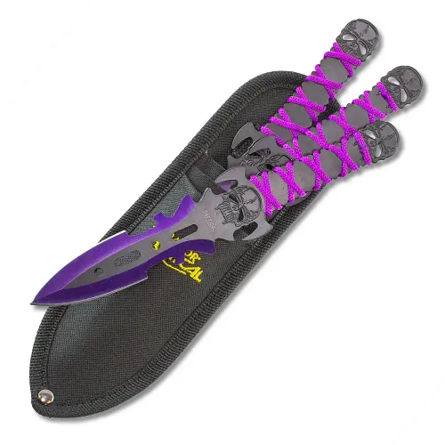 Purple Skull Throwing Knives deliver on both fronts. They have that perfect blend of attitude and performance that makes target practice more fun and more addictive. The black-and-purple finish gives them a bold, eye-catching look, while the skull pommel adds just the right amount of edge without feeling gimmicky. These are the kind of knives you pull out and immediately get asked about.