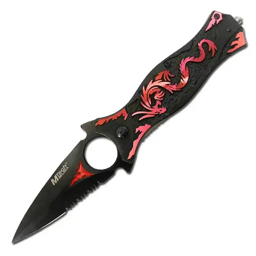 The red dragon arrowhead folding knife is a unique knife that would make an excellent gift for any knife collector. Mtech folding knives are crafted for durability and extraneous use.