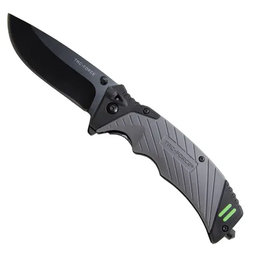 This 8.5" folding knife has an injection-molded nylon handle covered with rubber to make it both strong and easy to hold. The sharpened 3.75" matte black blade is made out of stainless steel. So this thing is easy to hold while you cut. The handle has a glass breaker at the end and there's a convenient pocket clip to help you secure the pocket knife when you're not using it.
