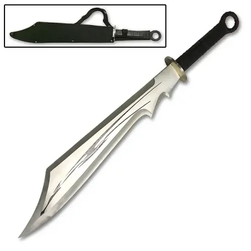 This short sword is a little more sturdy than most fantasy wall pieces. The blade is a strange mix of machete, scimitar, and broadsword which makes it a must have for collectors or even light yard work!