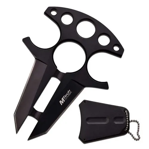 Split Blade Neck Knife. Taking the form of a black 4.5" push dagger, this neck knife comes with a special black nylon case that you wear around your neck with a metal chain. The 2.5" blade is made from stainless steel and the handle is designed so that you are ready to strike as soon as you pull the knife out of its sheath.