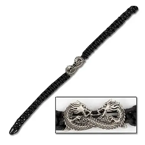 Twin silvery dragons entangled in an endless struggle adorn this stylish, corded bracelet.