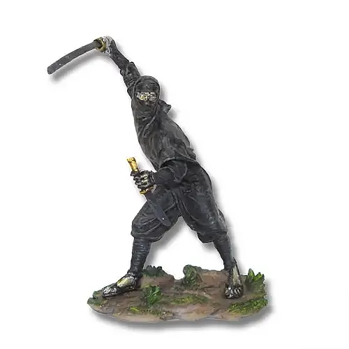 Ninja warriors were hardened, ruthless soldiers that had to go through experiences that were anything but pretty. So why should these statues be any different? These beautifully sculpted resin statues stand 5.5" tall and portray the ninja through a gritty, honest vision. Forget about the cute, anime look that most ninja figures go for. This ninja is wielding two deadly looking swords while standing ready to strike on a mound of muddy earth. It doesn't get any more real than this.